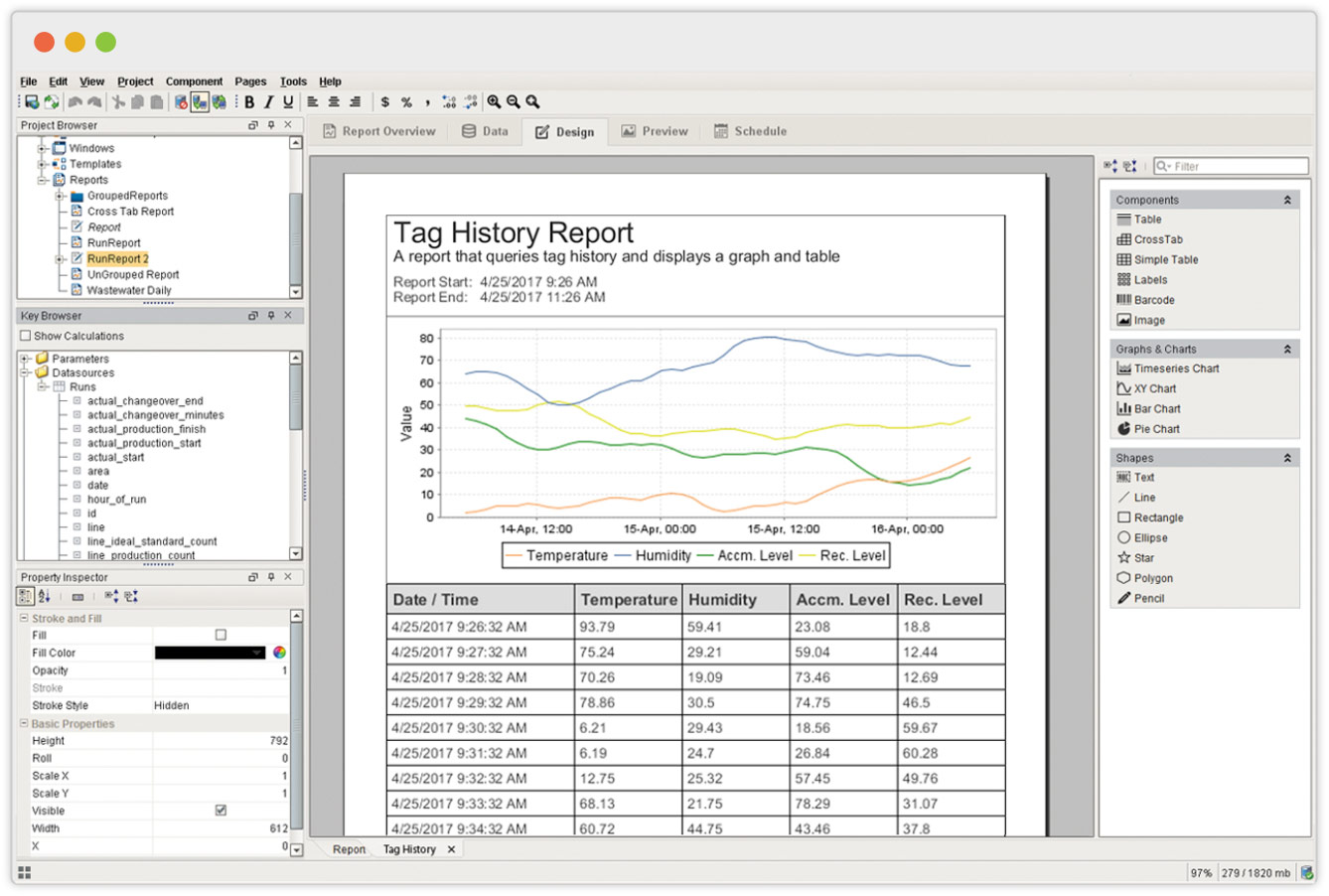 Design your reports easily inside Ignition’s Designer application. The interface is far more user-friendly than those of other reporting software, because it enables you to design reports with the same intuitive feel and rapid application development tools that you get when designing applications in Ignition. This allows you to design your reports using the drag-and-drop method.