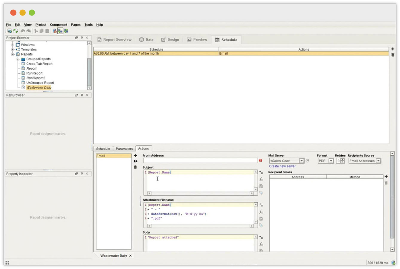 The Reporting Module allows you to schedule reports within the Ignition Gateway. You can schedule a report to run on a regular basis; for example, on every Monday at 5:00 p.m. Then, your report will run as scheduled whether or not any Ignition clients are open.