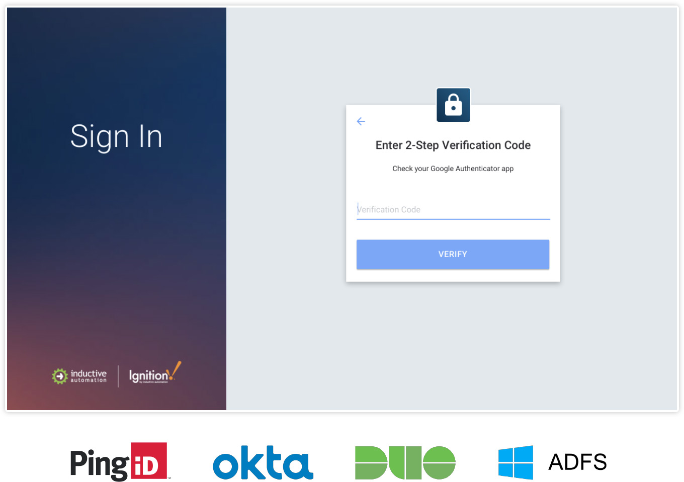 Ignition supports robust web-based authentication strategies, including federated identity, MFA, and SSO. The open platform enables you to centralize identity management with trusted technologies like SAML and OpenID Connect, integrate with corporate network security platforms like Microsoft Active Directory™, or manage roles and system access natively.